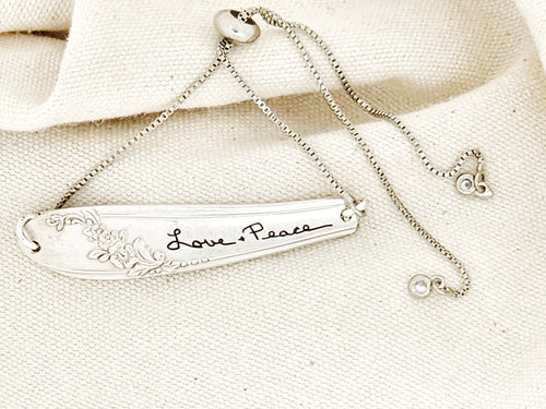 “Perfectly Imperfect” Spoon Necklace or Bracelet – Upcycled Silverware Jewelry – Inspirational Quote Piece -